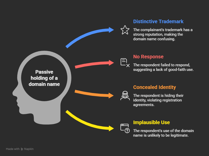 Non-use of a domain name (including a blank or “coming soon” page) would not prevent a finding of bad faith under the doctrine of passive holding. Relevant factors for passive holding include:
